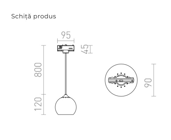 Corp de iluminat suspendat cu abajur din metal, prevăzut cu adaptor pentru șinele cu 3 circuite. Ideal pentru spații moderne, cu un design simplu și elegant.