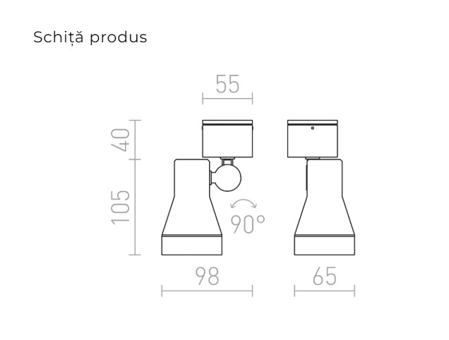 Corp de iluminat reflector exterior. Reflectorul poate fi înclinat după slăbirea șurubului de pe bază.