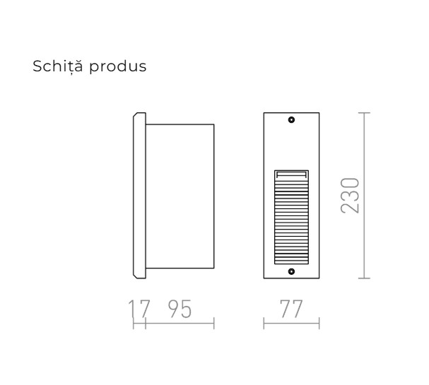 Corp de iluminat încastrat în exterior în perete. Rama vizibilă este de 2 cm adâncime. Montajul corpului de iluminat doar cu iluminatul în jos.