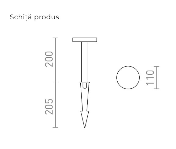 Lumina LED pe un vârf pentru gradini, cu iluminare in jos. Include un cablu de alimentare de un metru fără priză.