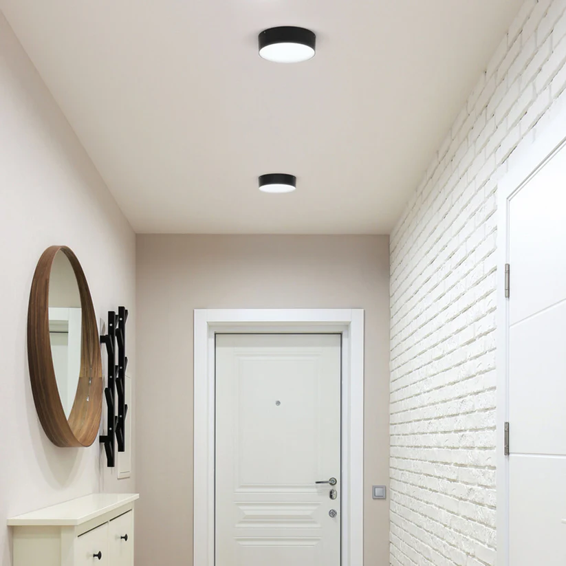 Lampa LED de tavan/perete pentru uz exterior, cu un cadru minimalist. Lampa include un comutator incorporat pentru modificarea temperaturii de culoare a luminii (3000K, 4000K, 5700K).
