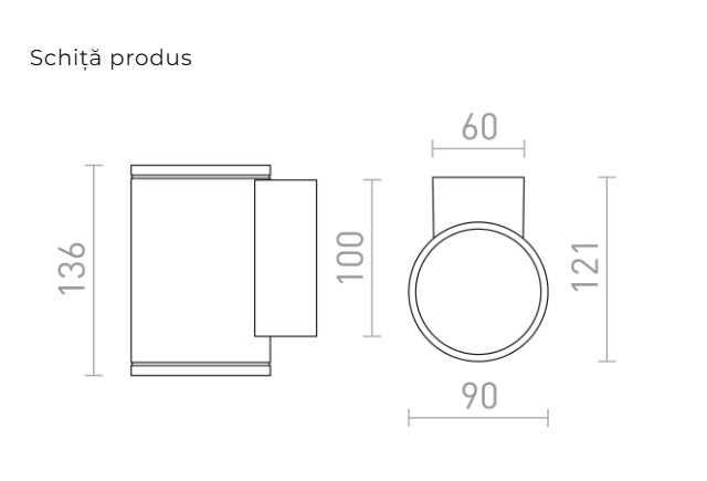 Corp de iluminat aluminiu de exterior pentru bec cu fasung GU10. Dimensiunile de bază sunt înălţime / lăţime / adâncime 10 / 6 / 3,1 cm.