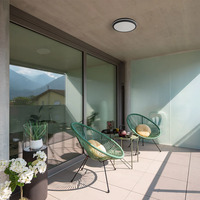 Lampa LED montata pe suprafața din plastic cu temperatura de culoare reglabila, conceputa pentru utilizare in exterior.