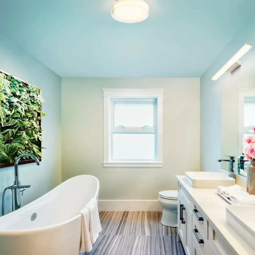 Plafoniera cu abajur combinat format din sticla transparenta exterioara si sticla interioara de culoare opal, situata pe baza cromata si cu LED incorporat. Potrivit pentru utilizare în băi.