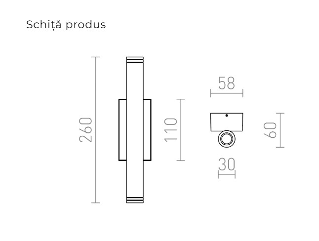 Tub LED minimalist montat pe o bază pătrată cu iluminare SUS / JOS, potrivit pentru utilizare în exterior.