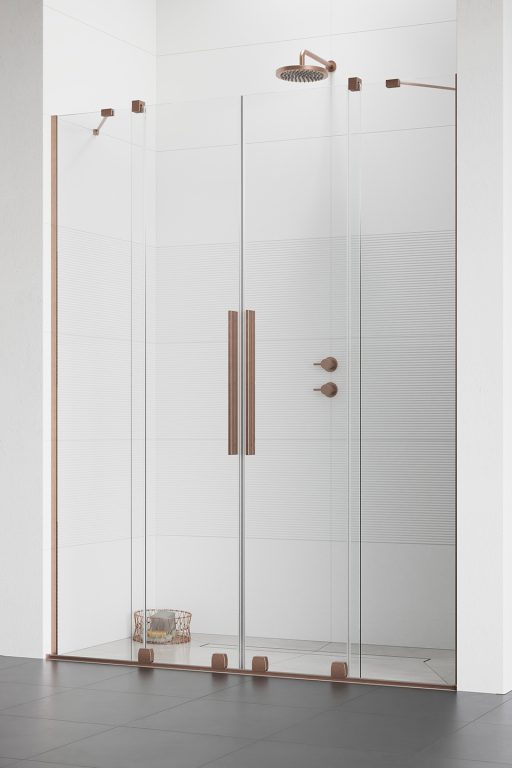 Ușa de duș Furo Brushed Copper DWD impresionează prin designul modern și finisajul sofisticat în nuanță cupru periat, oferind băii un aspect cald, elegant și rafinat. Tonurile de cupru cu reflexii satinate adaugă profunzime și transformă spațiul de duș într-un element de design distinct, potrivit atât pentru stiluri loft, cât și pentru amenajări clasice sau naturale.