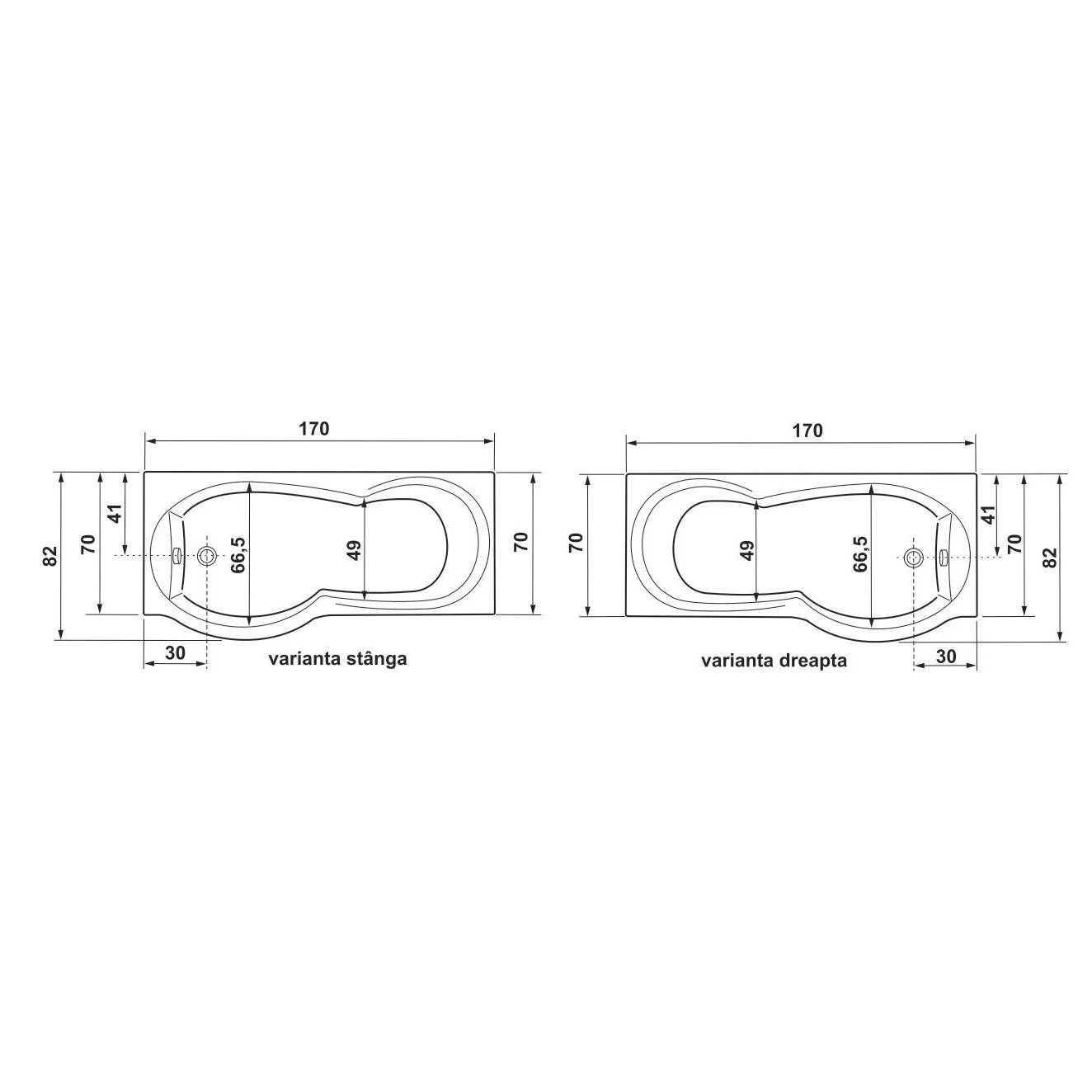 Modelul este disponibil în două variante de montaj, pe partea stângă sau pe partea dreaptă, oferind flexibilitate în funcție de configurația spațiului băii și preferințele de instalare.