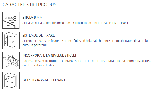 Seria Arta se remarcă prin atenția deosebită acordată fiecărui detaliu, rezultând produse elegante, durabile și ușor de integrat în orice tip de amenajare. Finisajul cromat adaugă un aspect luminos și rafinat, evidențiind liniile curate și designul contemporan al paravanului.