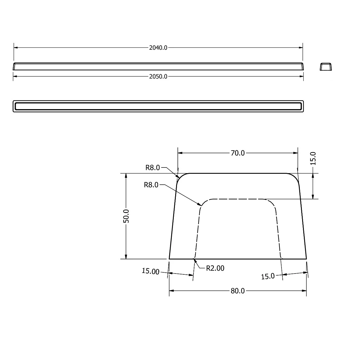 Fabricat din materiale rezistente la apă și uzură, pragul garantează durabilitate și întreținere ușoară. Forma sa dreaptă îl face compatibil cu majoritatea cabinelor de duș cu uși glisante sau batante, oferind stabilitate și etanșeitate optimă.