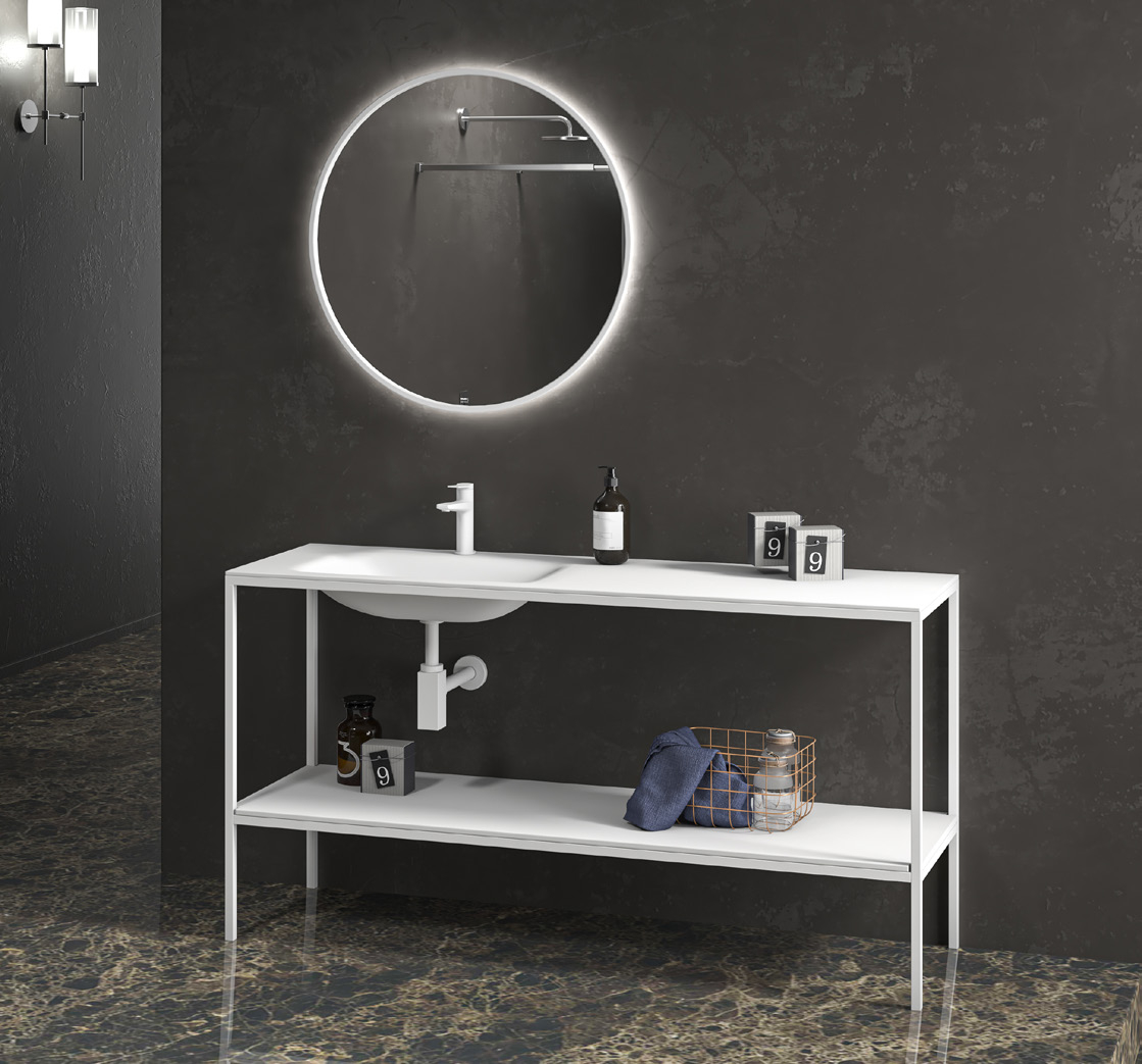 Un ansamblu de baie modern și rafinat, ideal pentru spațiile generoase. Finisajul Bianco Opaco conferă un aspect luminos și elegant, iar structura din oțel inoxidabil asigură rezistență și durabilitate. Lavoarul din Solid Surface adaugă un plus de stil și funcționalitate, în timp ce oglinda LED completează perfect designul, oferind o iluminare eficientă și un aer contemporan.