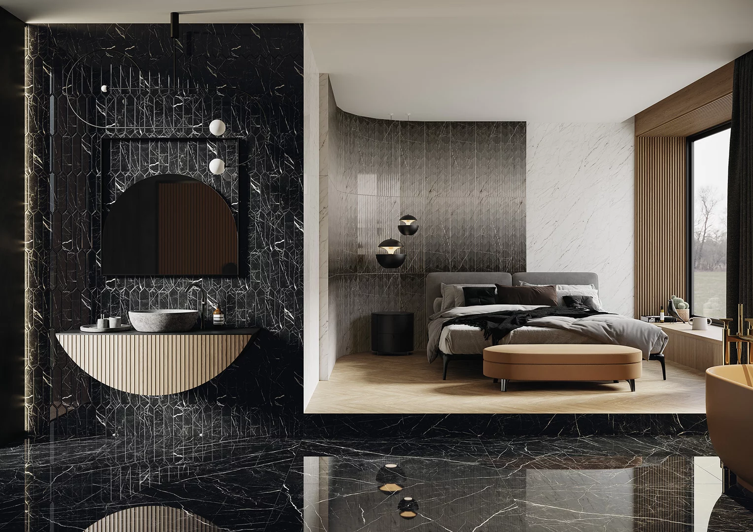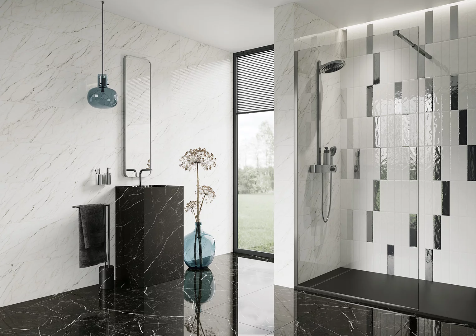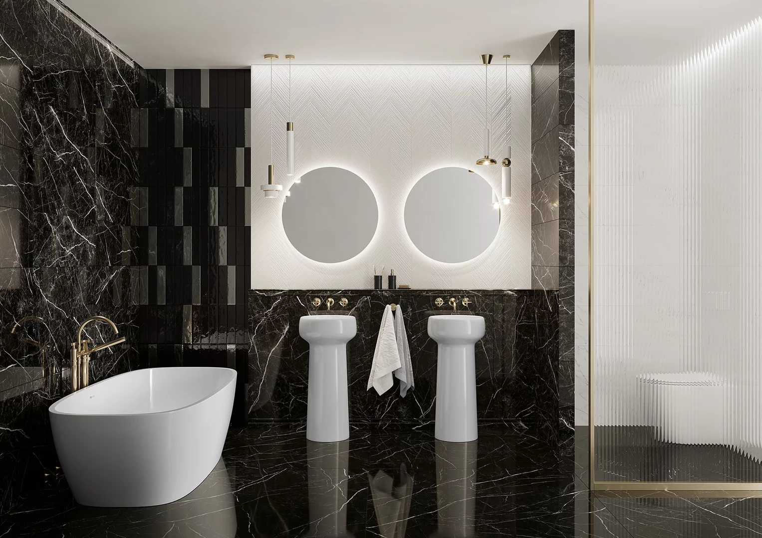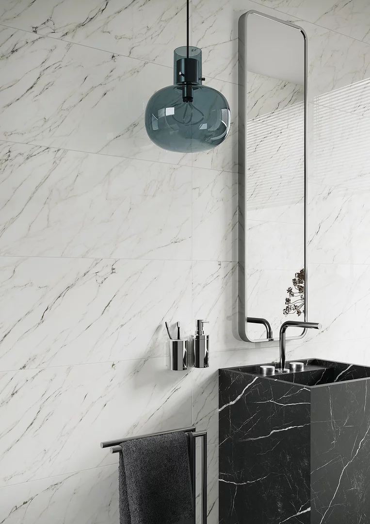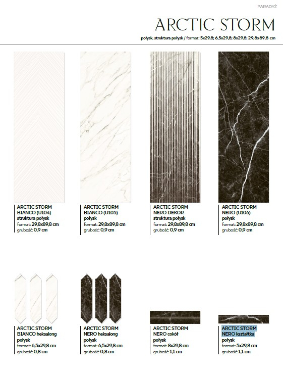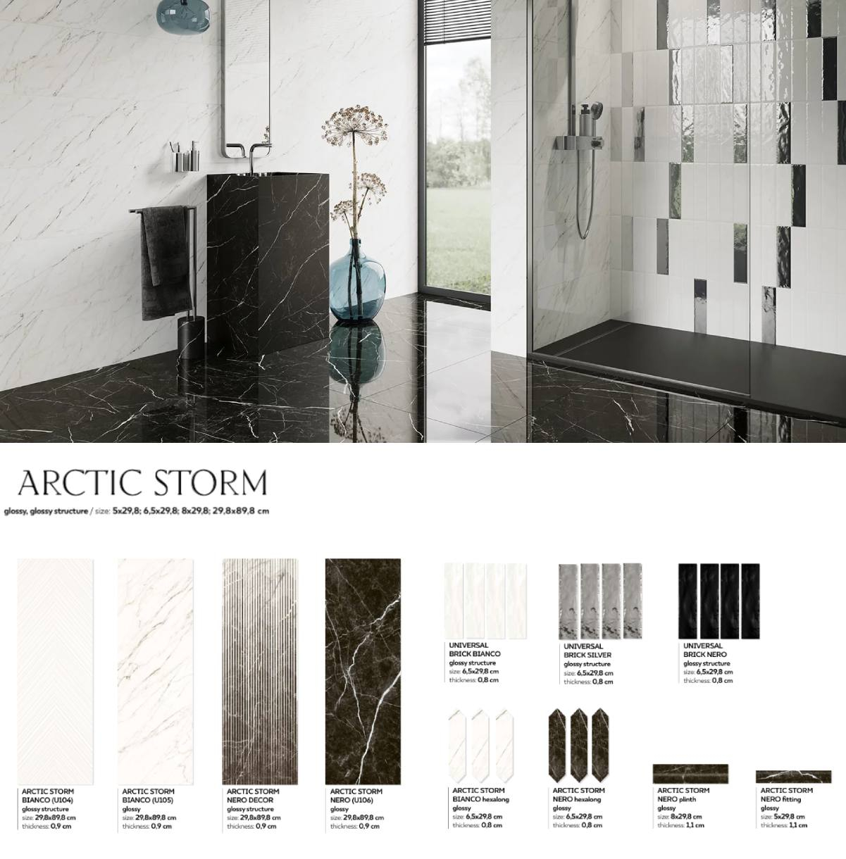 Colecția Arctic Storm de la Paradyz îmbină contrastul dramatic al negrului intens cu eleganța albului imaculat, inspirându-se din frumusețea naturală a marmurii Statuario. Această colecție adaugă un strop de rafinament oricărui spațiu interior, fiind ideală pentru băi, bucătării, saloane sau holuri.