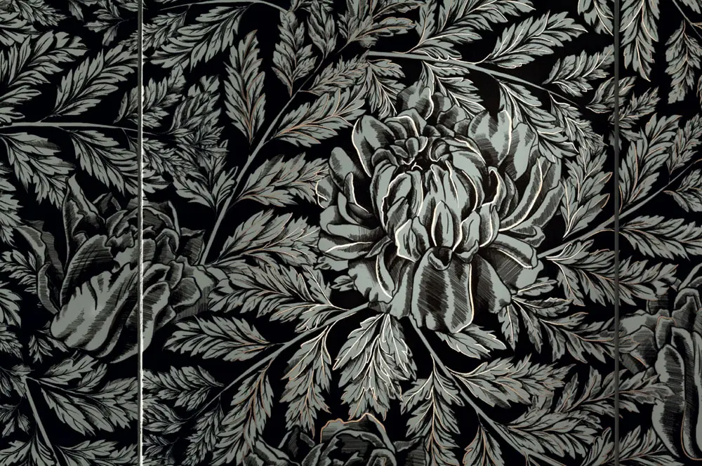 Nuanțele fine de roz pudrat, alb perlat și bej cald creează o atmosferă liniștitoare, în timp ce detaliile florale subtile adaugă un aer romantic și sofisticat. Texturile lucioase amplifică luminozitatea, oferind profunzime și un efect vizual deosebit.
