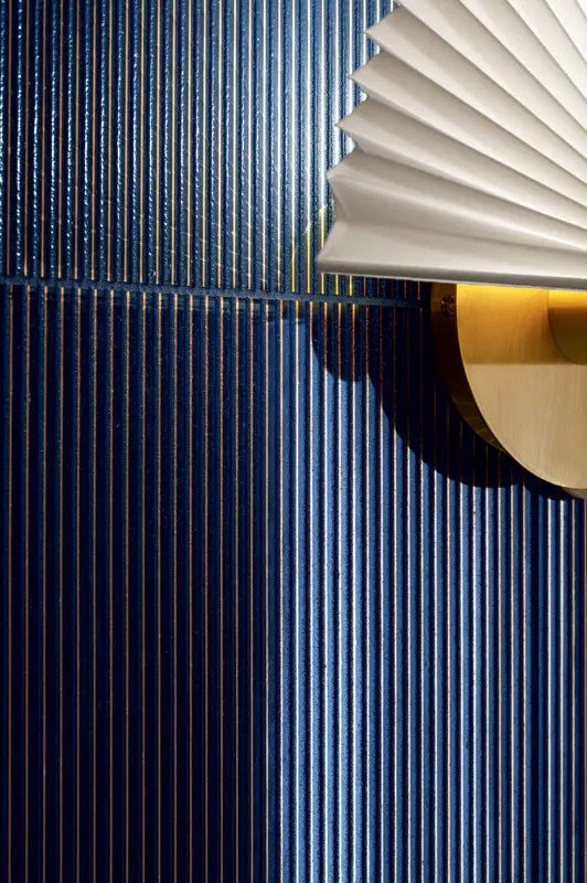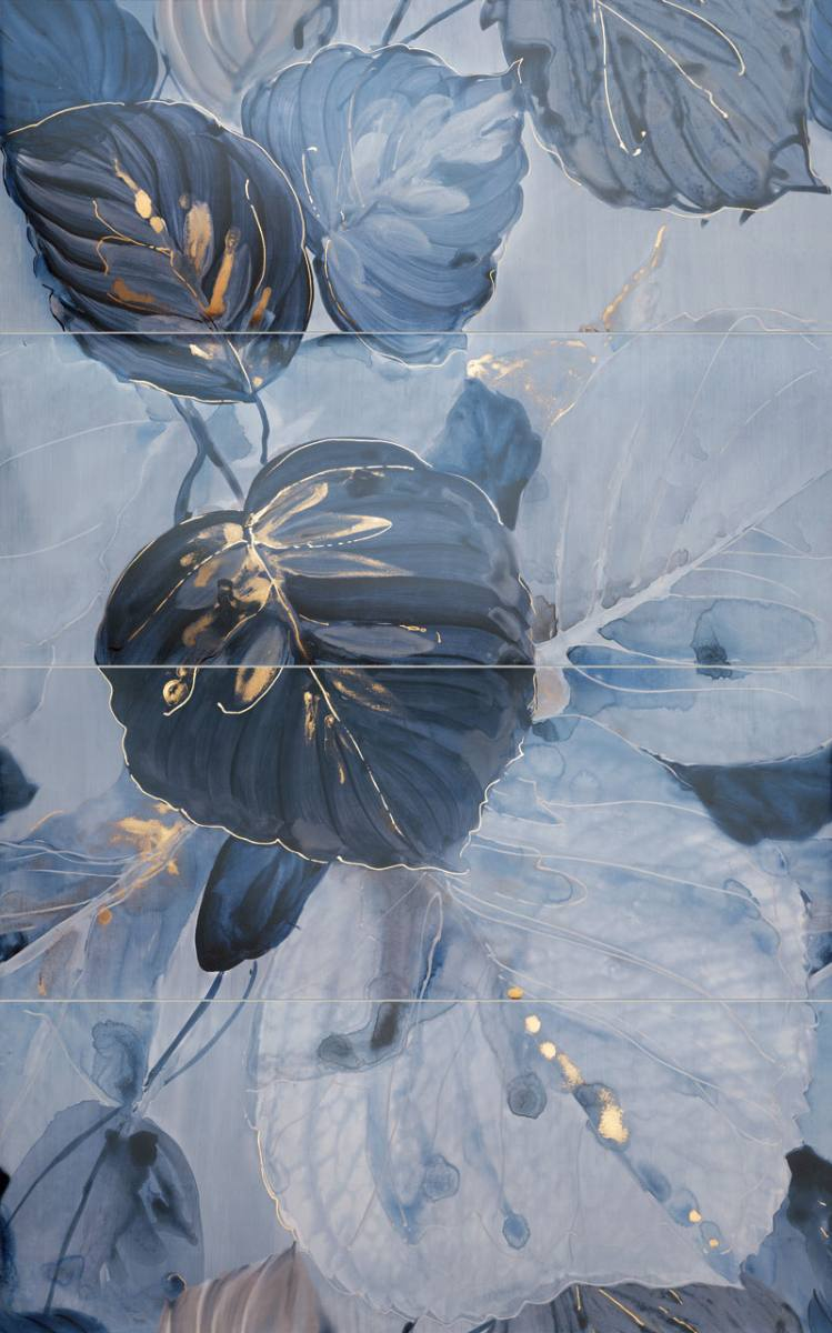 Colecția Blue Stone a fost inspirată de această atmosferă extraordinară. Farmecul mediteranean al marmurei formează o bază cu vinișoare albastre. Aceasta este completată de cărămizi burgund și albastre, care reflectă măiestria ceramicii andaluze. Decorurile sunt străbătute de fire aurii. Frunzele albastre, oglindite în suprafața apei, creează un model surprinzător.