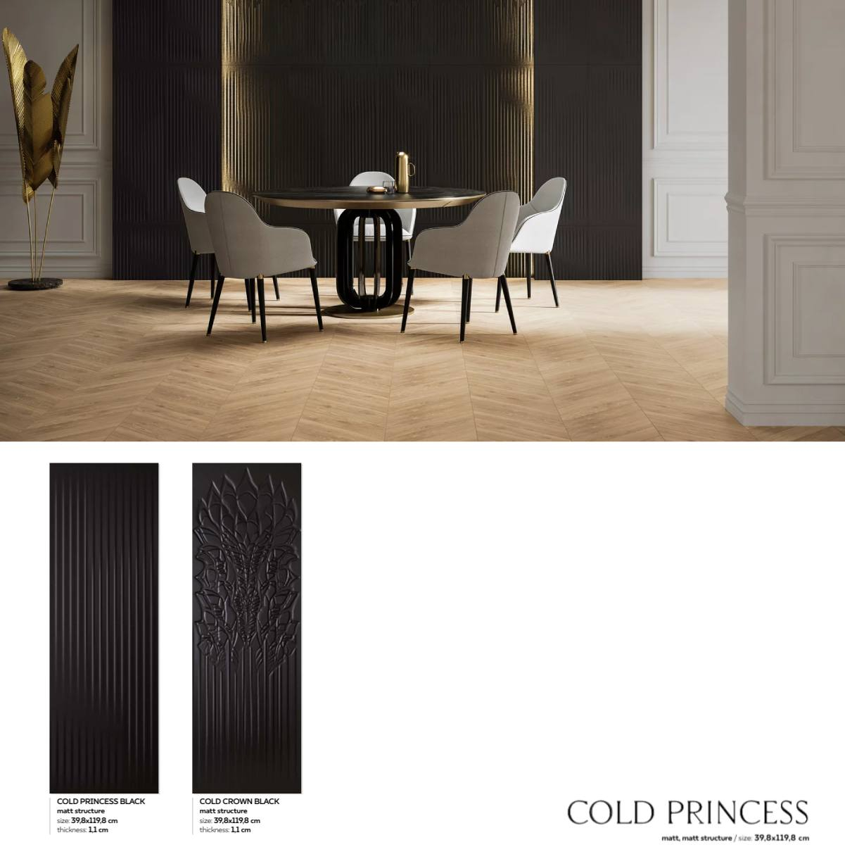 Modelul Cold Princess Black de la Paradyz este o placă de faianță de perete cu un design modern și elegant, disponibilă în dimensiunea de 39,8 × 119,8 cm, cu finisaj mat și textură structurată. Este rectificată, ceea ce permite o îmbinare precisă și uniformă, ideală pentru crearea unor suprafețe continue și sofisticate.