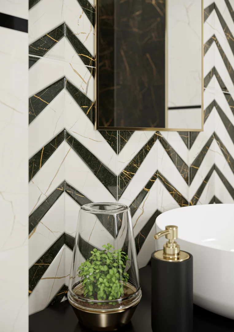 Exprimați-vă personalitatea prin interiorul Casei Dumneavoastră de Vis. Demonstrați că modelele clasice cu marmură nu se demodează niciodată. Completați-l cu elemente decorative geometrice, prin textură și inserțiile cu grafică direcțională, subliniate cu aur. Lăsați contrastul dintre alb și negru să completeze bogăția reflexelor aurii. Colecția Fancy este varianta modernă a clasicului atemporal care va transforma interiorul pe care îl creați în cartea dumneavoastră de vizită.