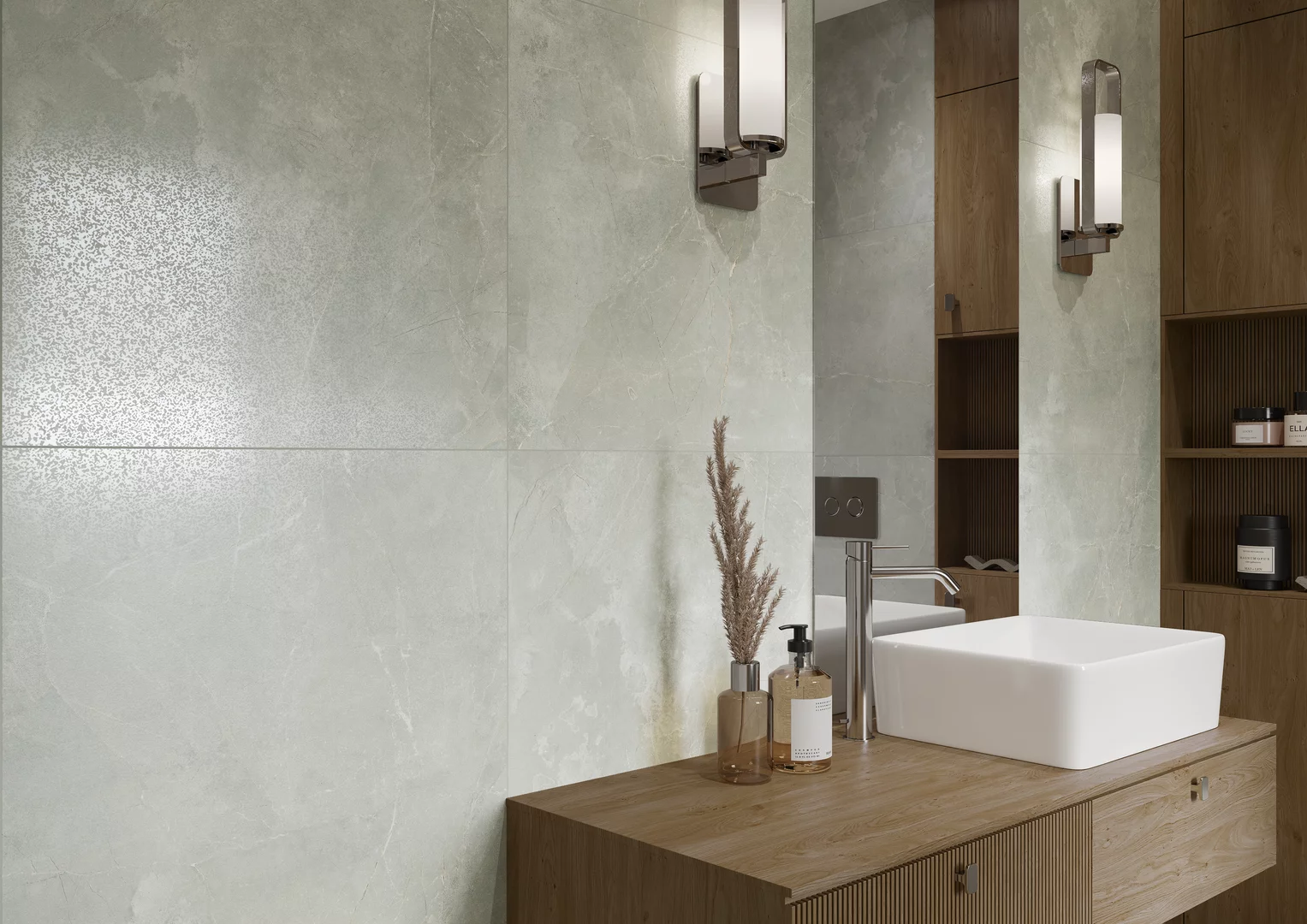 Colecția este completată de plăcile decorative de perete în formatul de 29,8x59,8 mm, în culoarea gri. Acestea au un efect spectaculos de modele strălucitoare, care sunt și tangibile la atingere.