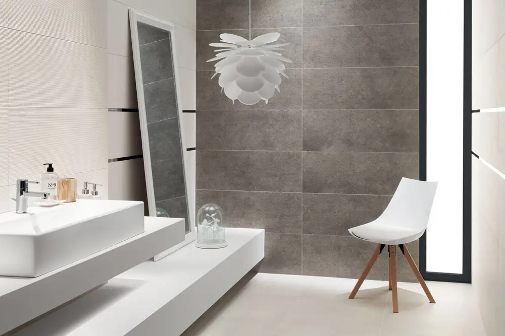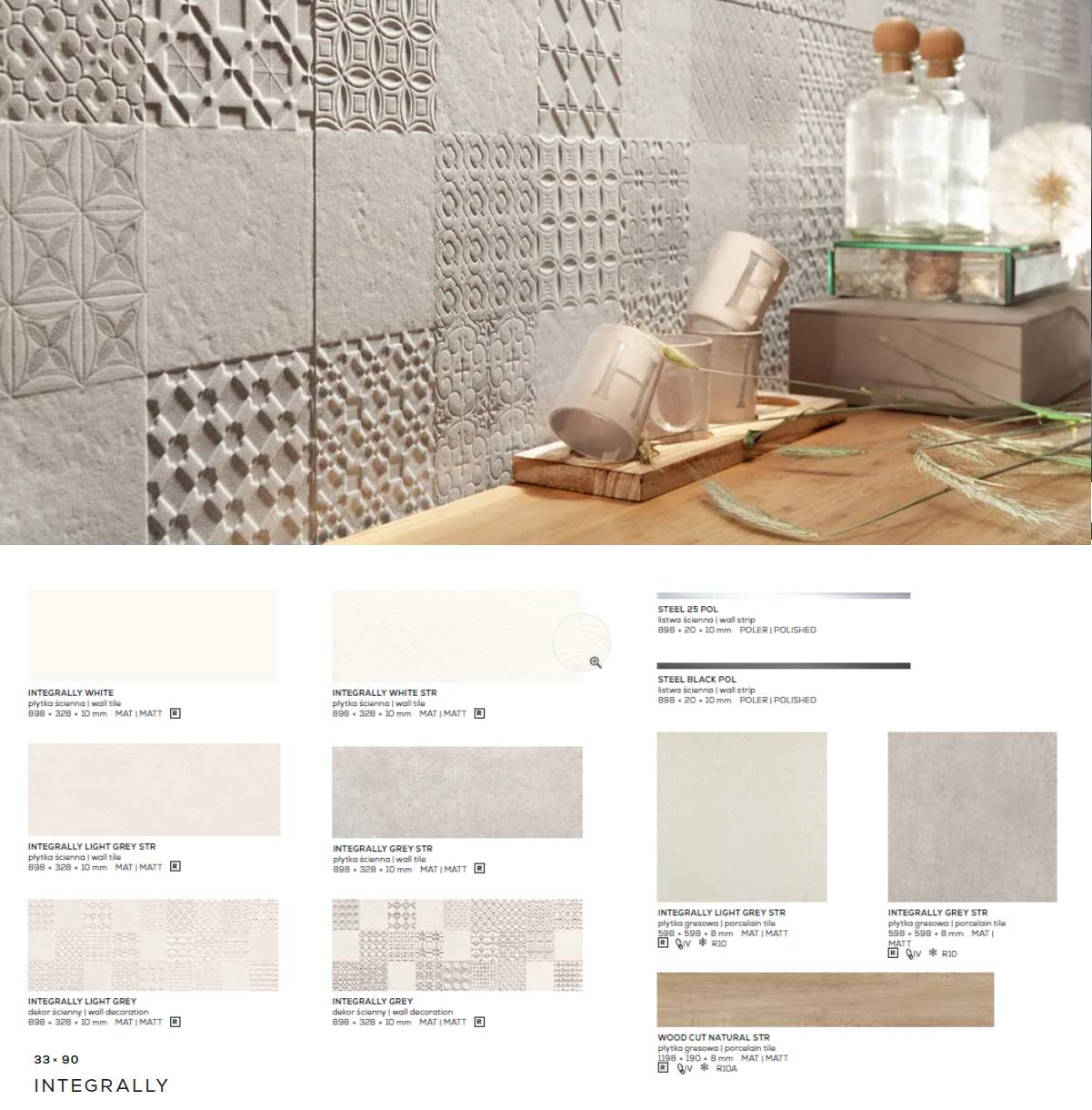Colecția „Integrally White” îmbracă spațiul într-o liniște luminoasă, unde albul este reinterpretat într‑o textură mată și rafinată. Plăcile, cu dimensiunea de aproximativ 898 × 328 mm și muchii rectificate, se aşază discret pe perete, creând o suprafață continuă, calmă, care invită lumina să alunece tăcut pe suprafața sa. Tubądzin+2Tubądzin+2