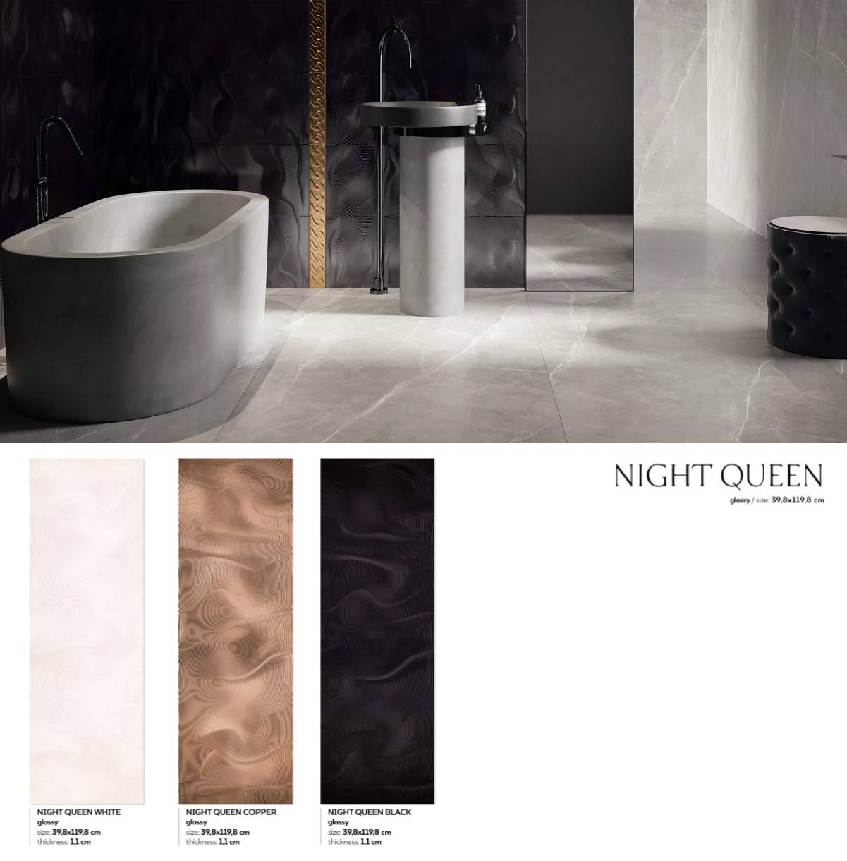 Colecția Night Queen de la Paradyz aduce eleganța și rafinamentul lumii modei direct în interiorul casei tale. Disponibilă în nuanțe de negru, alb și cupru, această faianță combină dramatismul, luminozitatea și căldura într-un design sofisticat, potrivit pentru interioare moderne și stilate. Plăcile, cu dimensiunile de 39,8 × 119,8 cm și finisaj lucios, sunt rectificate pentru a permite îmbinări precise și suprafețe uniforme, transformând fiecare perete într-un element de design impresionant. Colecția include și plinte decorative care completează armonios ansamblul, adăugând accente subtile de stil și continuitate.