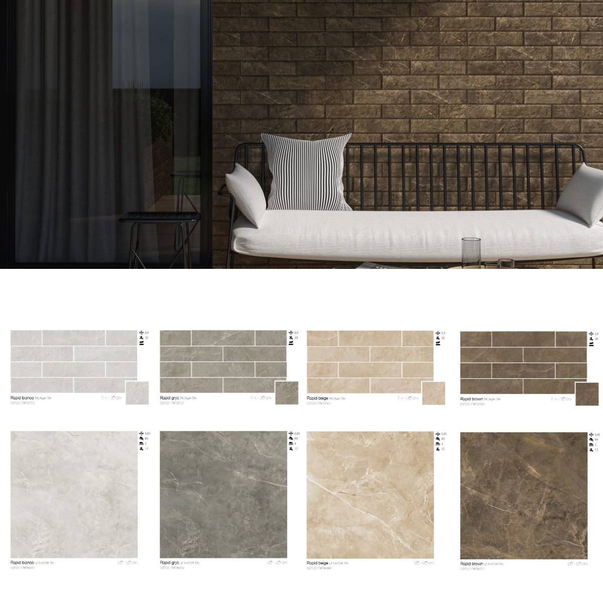 Textura plăcilor oferă profunzime și personalitate, generând un joc vizual elegant, fără a încărca spațiul. Tonurile calde sau neutre ale colecției sunt suficient de versatile pentru a se integra în stiluri variate — de la rustic modern și industrial chic, până la minimalism scandinav sau design urban contemporan. Într-o baie, creează o atmosferă caldă, naturală și relaxantă. Într-o bucătărie, devine un fundal ideal pentru mobilierul modern sau rustic, punând în valoare materialele naturale precum lemnul, metalul sau sticla. Pe holuri sau în zone de accent, faianța Stone Rapid transformă pereții în elemente de design, oferindu-le structură și armonie vizuală, fără a pierde din eleganța discretă.