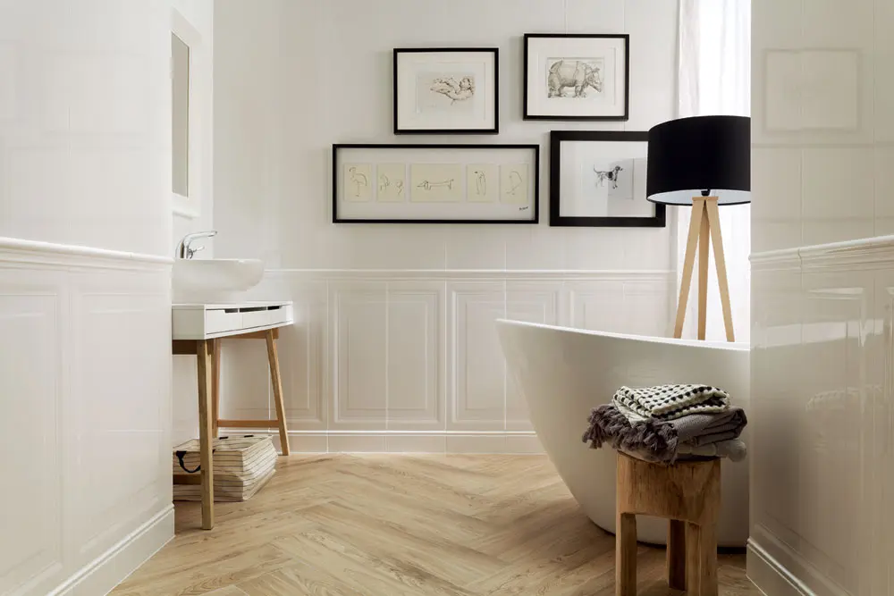 Suprafețele sale fine, cu detalii inspirate din marmură și accente metalice subtile, reflectă lumina într-un mod delicat, conferind profunzime și strălucire fiecărui spațiu. Decorurile rafinate aduc un aer aristocratic, transformând baia sau livingul într-un veritabil sanctuar al bunului gust.