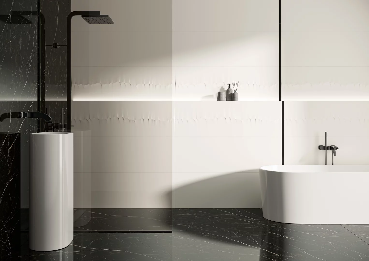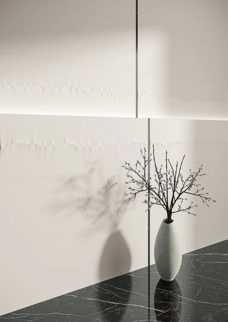 Plăcile din colecție sunt disponibile în nuanțe de alb și argintiu, cu finisaje lucioase sau mate, și au dimensiunea de 39,8 × 119,8 cm. Sunt rectificate, ceea ce permite o instalare precisă și uniformă. Designul lor subtil și elegant adaugă un aer de lux oricărui spațiu, fiind potrivite pentru cei care apreciază estetica minimalistă și sofisticată.