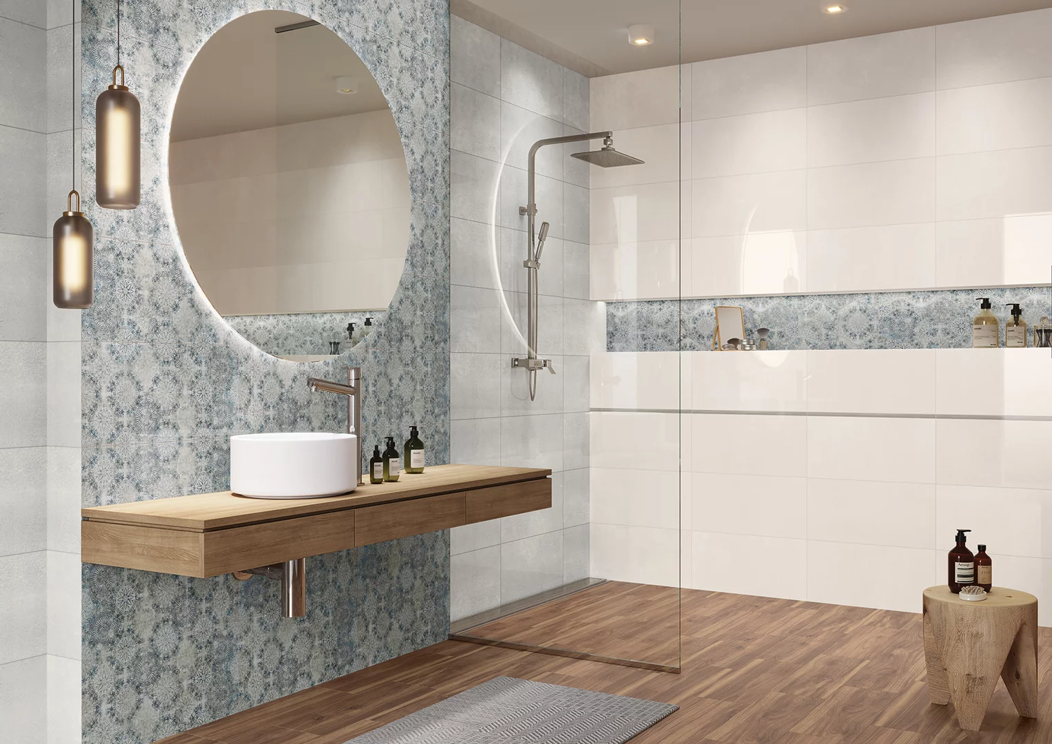 Plăcile decorative din colecția Sweet Blue Decor Mix adaugă personalitate și dinamism, prin jocuri subtile de texturi și modele. Combinația dintre tonurile neutre și accentele pastelate oferă libertate în amenajare, potrivindu-se perfect atât interioarelor moderne, cât și celor clasice reinterpretate.