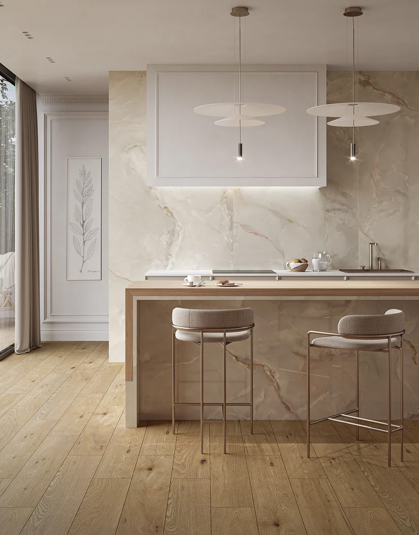 Trueland Gold se integrează armonios în diverse stiluri de amenajare, de la rustic modern și scandinav, până la clasic contemporan. Aspectul său cald și natural aduce un plus de confort și eleganță în orice încăpere, fie că este vorba de living, baie, hol sau spațiu exterior.