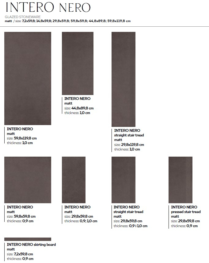 Datorită diversității de dimensiuni și finisaje, INTERO NERO permite realizarea unor combinații creative pe pereți și podele, adaptate nevoilor și preferințelor fiecărui client.