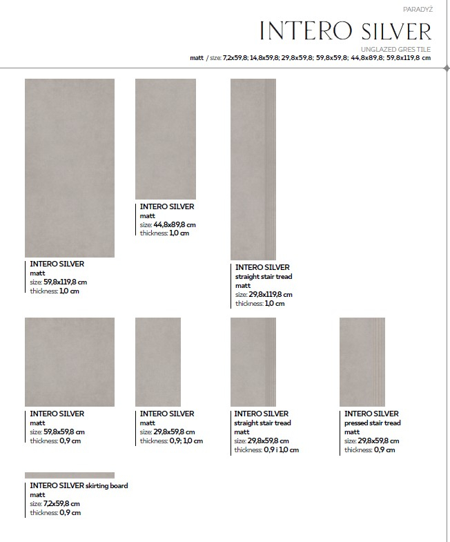 Colecția INTERO SILVER emană eleganță contemporană și echilibru vizual. Inspirația din textura subtilă a betonului se îmbină cu luminozitatea argintie a nuanțelor de gri, creând un fundal rafinat pentru spații moderne și minimaliste.