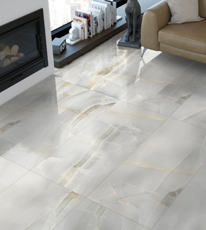 Colecția Amber Onyx Bianco aduce în spațiul interior delicatețea onixului natural într-o interpretare modernă, luminoasă și rafinată. Plăcile din această colecție se disting prin nuanțe diafane de alb și crem, îmbinate cu vene subtile în tonuri calde, care creează o textură sofisticată și armonioasă. Jocul de lumină pe suprafața lucioasă amplifică senzația de spațiu și puritate, transformând orice încăpere într-un ambient elegant, aerisit și contemporan.
