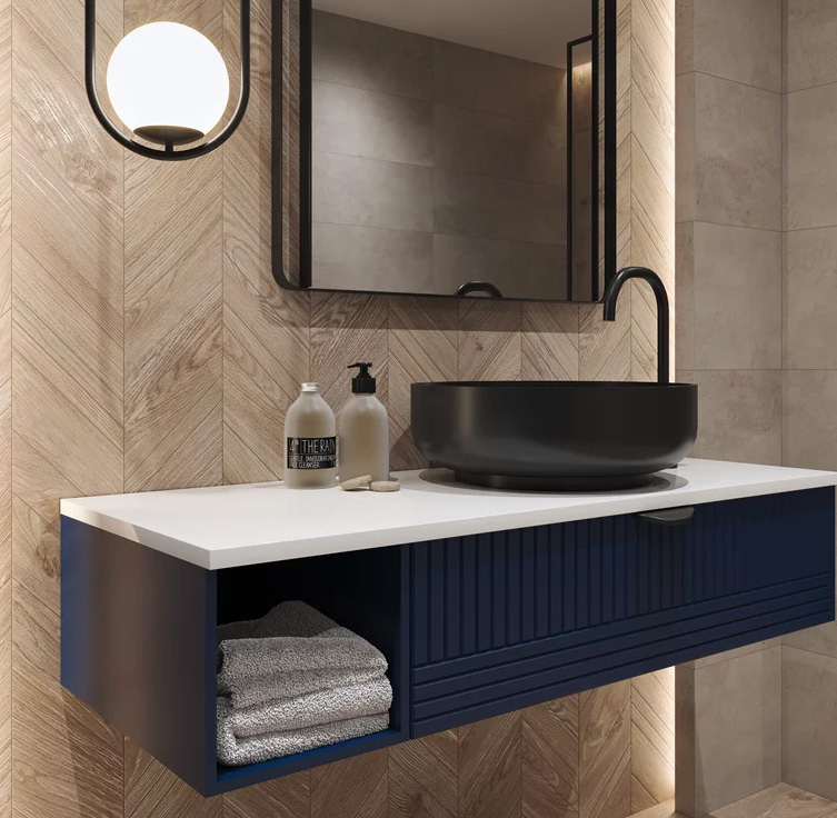 Wildland Dark imită aspectul lemnului deschis la culoare, fiind ideală pentru crearea unui ambient cald și natural în băi, livinguri sau holuri. Datorită dimensiunilor sale, se pretează atât pentru montajul clasic, cât și pentru aranjamente moderne.
