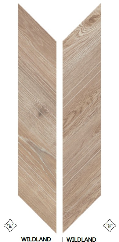 Wildland Warm imită aspectul lemnului deschis la culoare, fiind ideală pentru crearea unui ambient cald și natural în băi, livinguri sau holuri. Datorită dimensiunilor sale, se pretează atât pentru montajul clasic, cât și pentru aranjamente moderne.