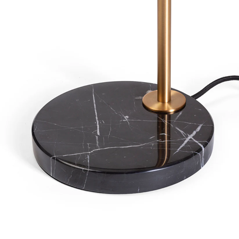 Lampă de podea realizată din alamă, cu elemente decorative ce imită marmura neagră, concepută pentru a adăuga un plus de rafinament și stil oricărui interior. Designul său sofisticat o face ideală pentru livinguri elegante, dormitoare sau spații cu accente luxoase.