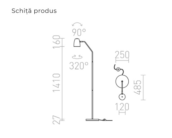 Lampă de podea modernă, cu design minimalist, ideală pentru living, dormitor sau colțuri de lectură. Este compatibilă cu bec E27, oferind flexibilitate în alegerea intensității și temperaturii luminii, în funcție de atmosfera dorită.