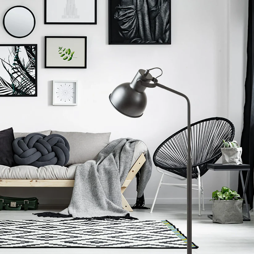 Lampă de podea cu design retro, ideală pentru a adăuga personalitate și căldură oricărui spațiu. Se potrivește perfect în livinguri, dormitoare sau zone de relaxare cu accente vintage.