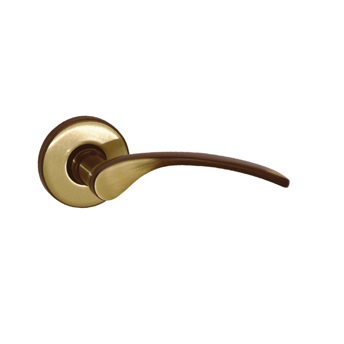 Designul echilibrat al mânerului, completat de rozeta rotundă, oferă atât confort în utilizare, cât și o integrare armonioasă în diverse tipuri de uși și mobilier. Materialele de calitate asigură durabilitate și rezistență în timp, menținând farmecul estetic al produsului.