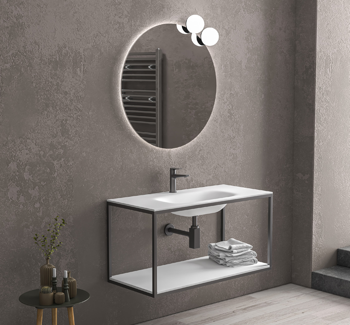 Un set de baie modern, cu finisaj Gun Metal, ce combină eleganța oțelului inoxidabil cu funcționalitatea lavoarului Solid Surface. Designul minimalist și accesoriile LED adaugă un plus de stil și confort băii tale, transformând-o într-un spațiu practic și rafinat.