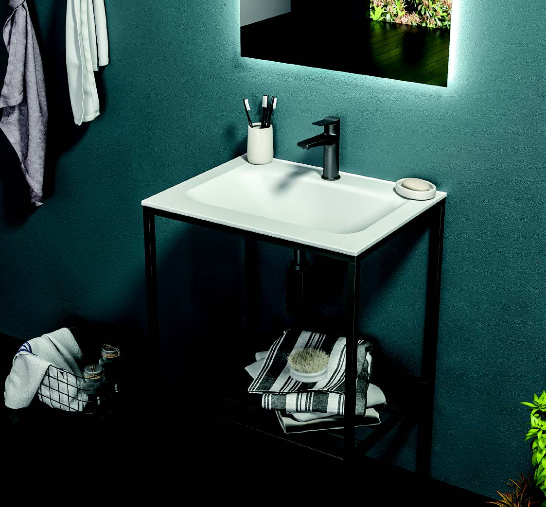 Un set de baie compact și modern, cu finisaj Gun Metal, ce aduce un aer sofisticat și contemporan în orice baie. Combinația dintre mobilierul din oțel inoxidabil și lavoarul Keratek garantează durabilitate și întreținere ușoară, iar oglinda cu LED oferă iluminare optimă și un design elegant.