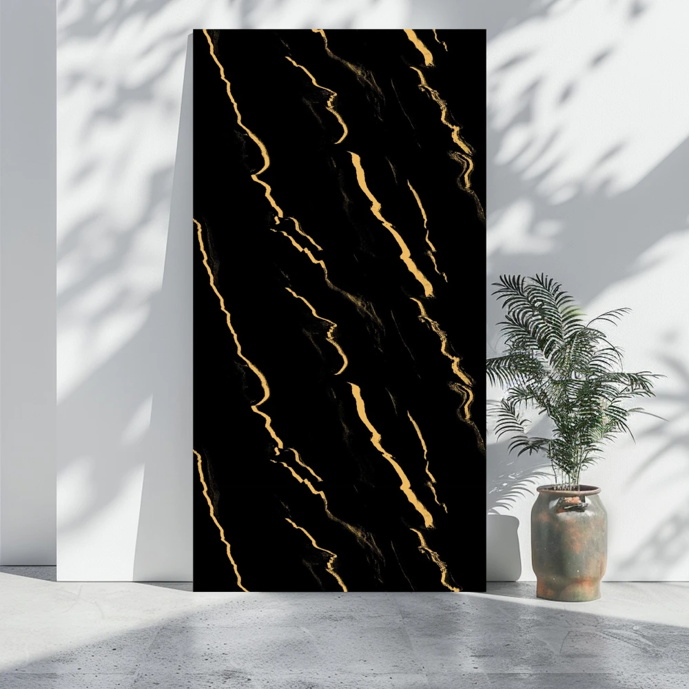 Panou decorativ din PVC, model marmura, negru-auriu