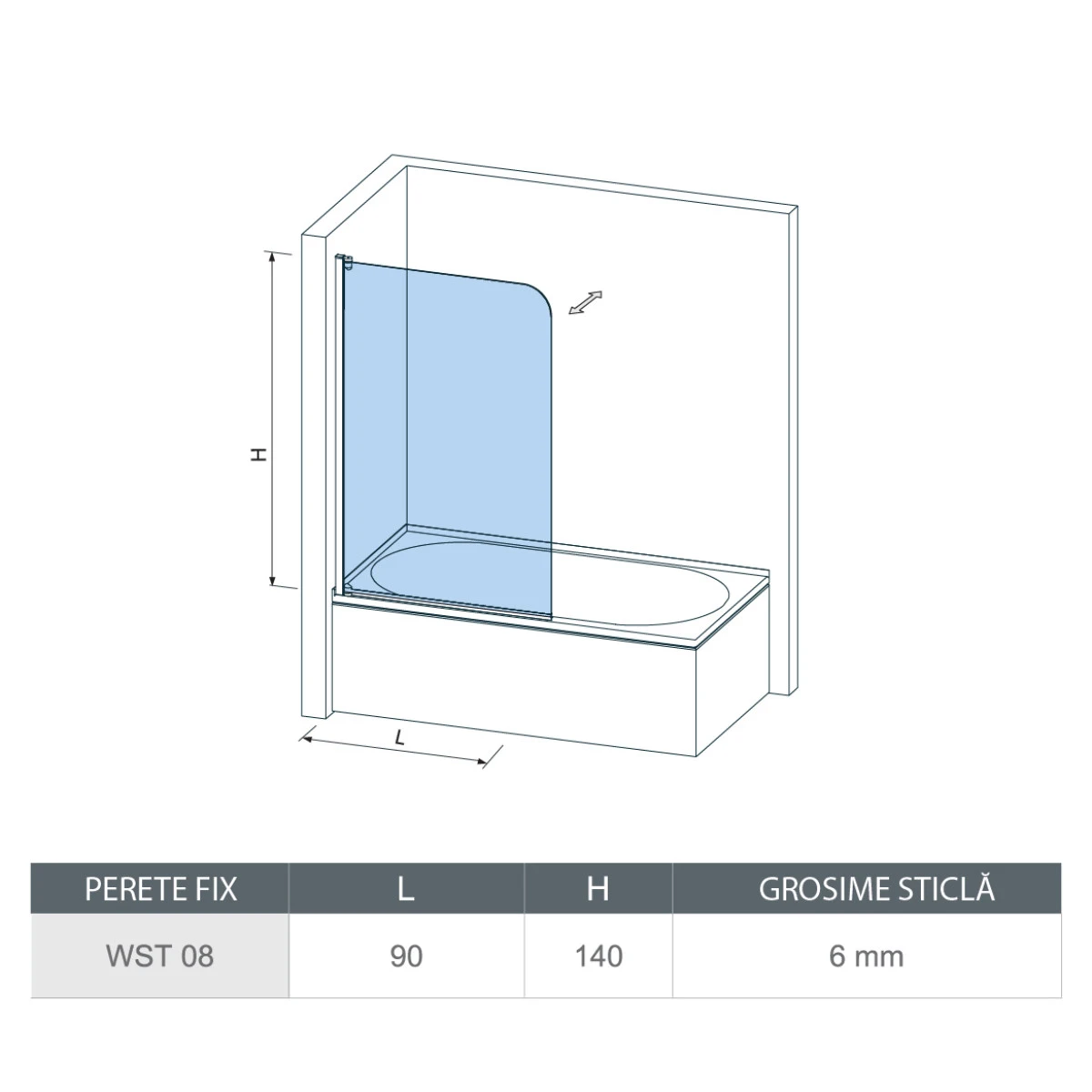 Cu dimensiuni de 90 cm lățime și 140 cm înălțime, paravanul se montează direct pe cadă, asigurând protecție eficientă împotriva stropirii. Modelul permite montaj reversibil, putând fi instalat atât pe partea stângă, cât și pe partea dreaptă, în funcție de configurația băii.