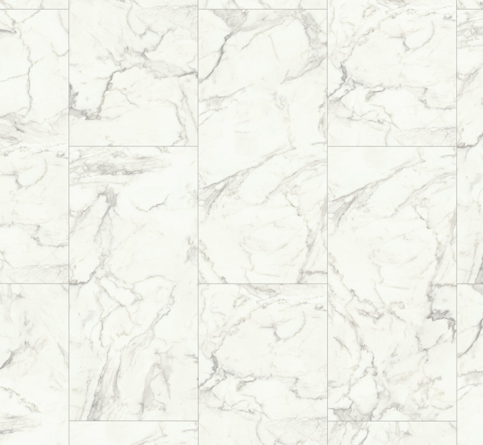 Decorul Marble Eos alb redă fidel textura pietrei naturale, cu vene delicate și denivelări vizibile care conferă autenticitate și profunzime suprafeței. Formatul supradimensionat de 856 x 403 x 5,5 mm adaugă continuitate vizuală și individualitate spațiilor, fiind ideal atât pentru băi, cât și pentru camerele de zi sau alte încăperi. Marginile teșite pe toate laturile accentuează impresia unei pardoseli autentice și elegante.