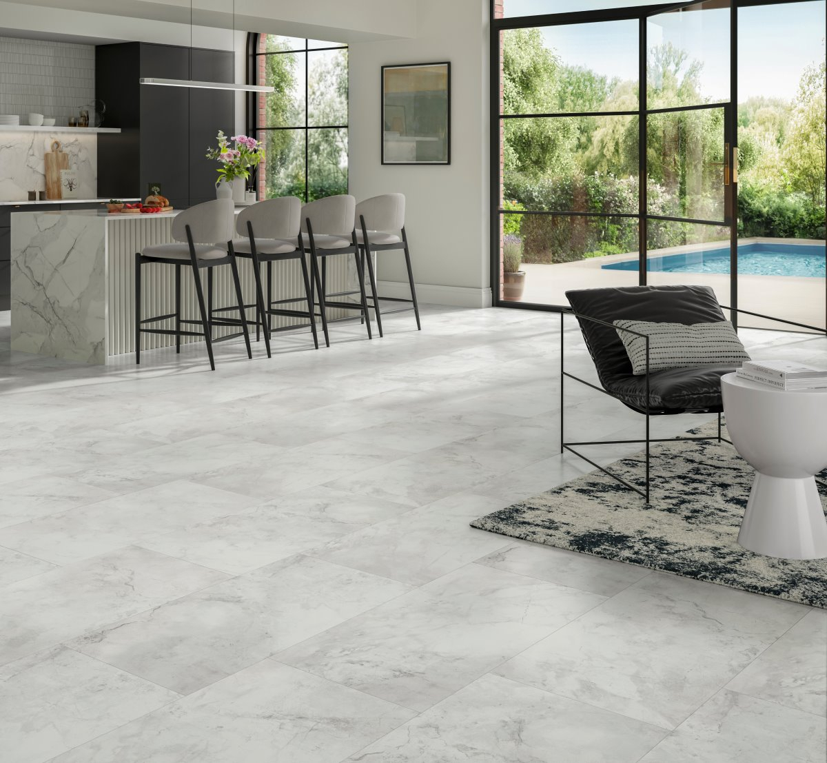 Concepută pentru un mediu de locuit sănătos, pardoseala are emisii reduse și contribuie la un climat interior plăcut. Structura minerală oferă o senzație naturală, iar suprafața poroasă, ușor texturată, reproduce cu fidelitate caracterul pardoselilor din piatră fină, pentru un realism vizual și tactil deosebit.