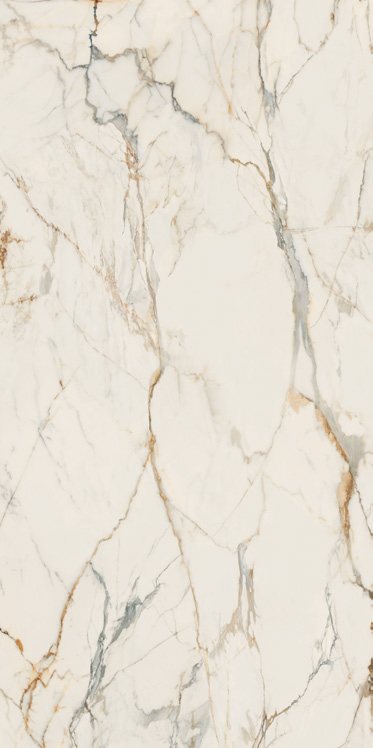 Colecția este inspirată de legendara piatră calacatta, cu o suprafață satinată lustruită și subtilă. Este non-banală, cu modelele sale distincte decupate cu numeroase pete maro pe linii, combinând stilul tipic calacatta oro și crema. Urmele cu adevărat unice aduc aminte de vacanțele mediteraneene. Secțiunea transversală a plăcii de 20 mm afișează linia continuând modelul suprafeței, o magie decorativă închisă în culori minunate. Aduceți adevăratele opere de artă în interiorul dumneavoastră.