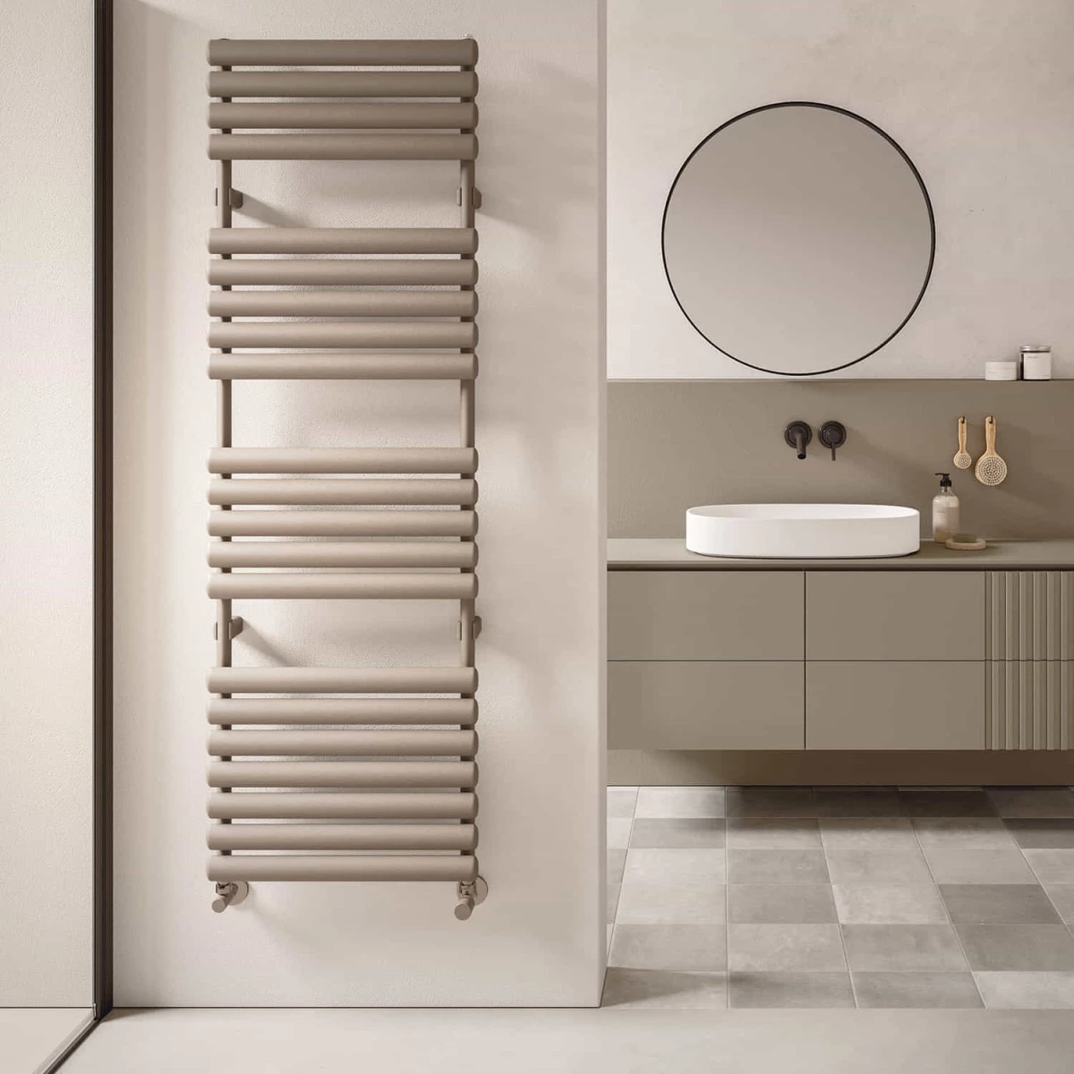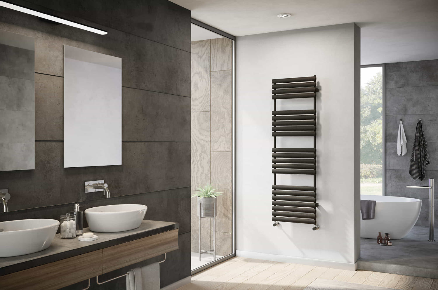 Radiatoarele de baie IRSAP (cunoscute și ca radiatoare port-prosoape) îmbină eleganța și funcționalitatea într-o manieră rafinată. Forma clasică de "scară verticală", alcătuită din două tuburi verticale și o serie de niște bare orizontale, este reinterpretată armonios pentru a îndeplini un dublu rol: practic și estetic.
