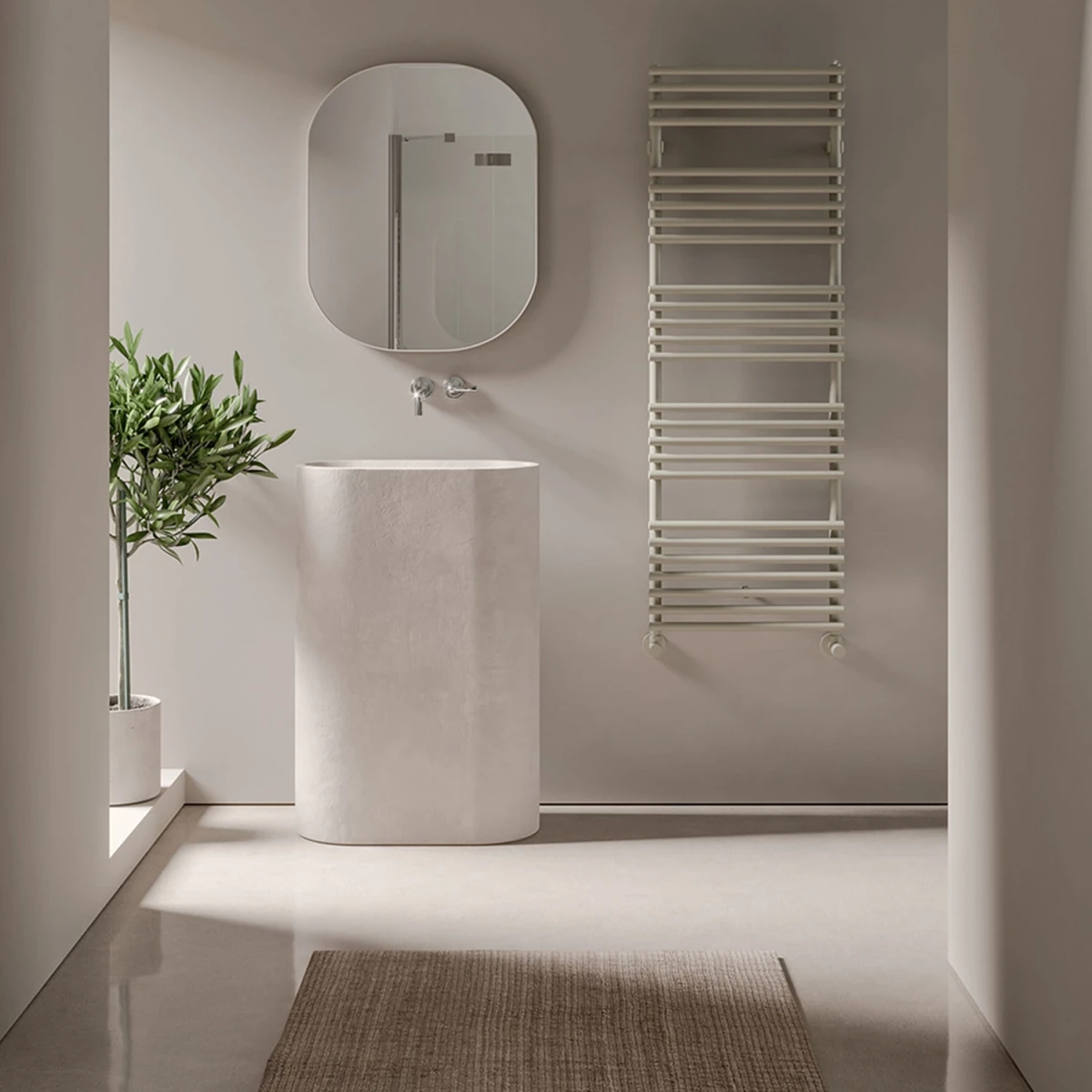 Radiatoarele de baie IRSAP (cunoscute și ca radiatoare port-prosoape) îmbină eleganța și funcționalitatea într-o manieră rafinată. Forma clasică de "scară verticală", alcătuită din două tuburi verticale și o serie de niște bare orizontale, este reinterpretată armonios pentru a îndeplini un dublu rol: practic și estetic.