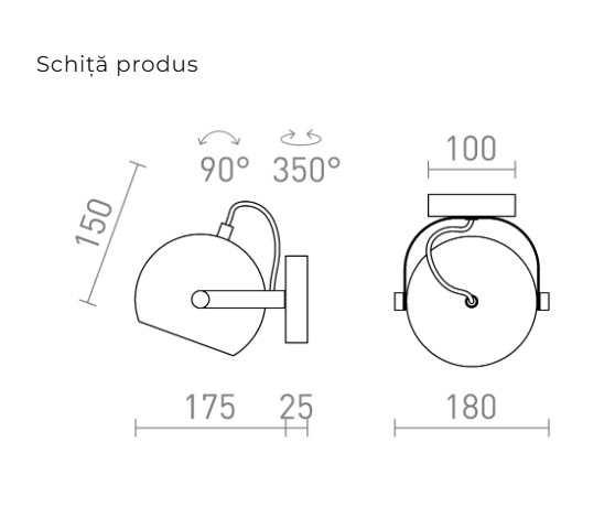 Spot cu abajur metalic rotund și rotativ, compatibil cu bec E27.