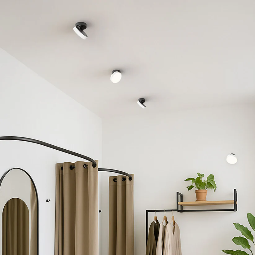 ARETHA este un corp de iluminat LED plat, montat pe suprafață, cu posibilitatea de a înclina și roti secțiunea luminoasă pentru a direcționa precis fasciculul de lumină. Corpul de fixare poate fi utilizat atât pe pereți, cât și pe tavan, oferind flexibilitate în amenajare și un design modern, discret.