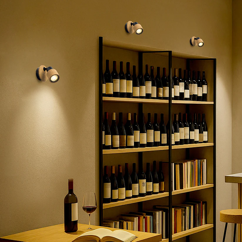 Spot de perete realizat din combinație de plută naturală și metal vopsit, compatibil cu surse de lumină LED cu soclu GU10.