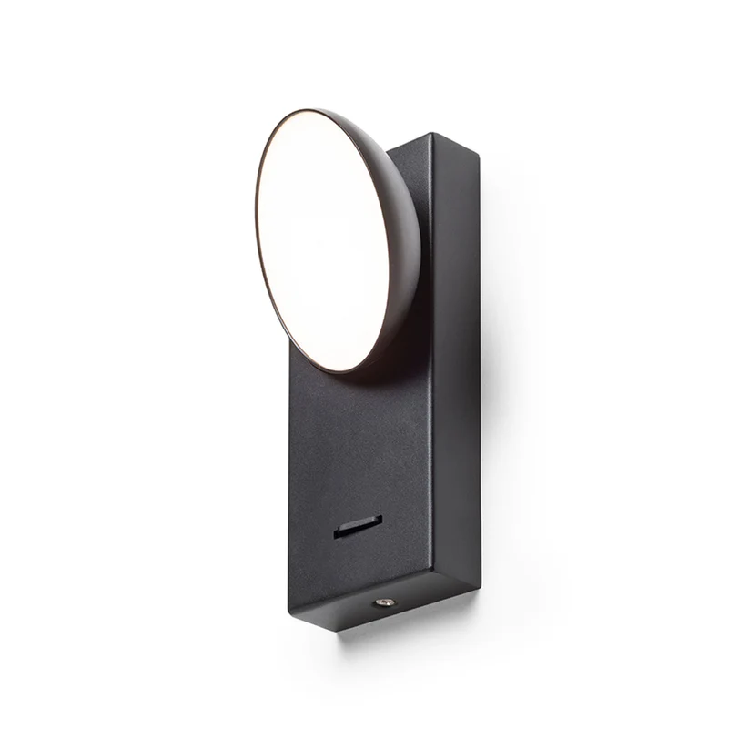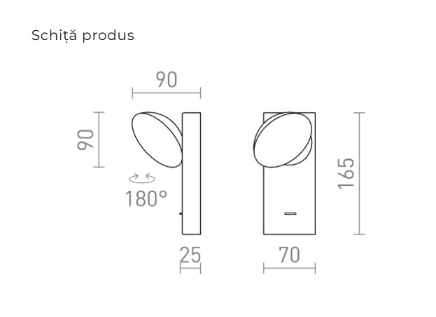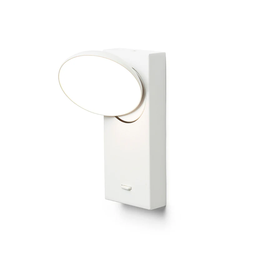 Lampa de perete cu cap rotativ in formă de farfurie, construită in LED si difuzor de culoare opal.