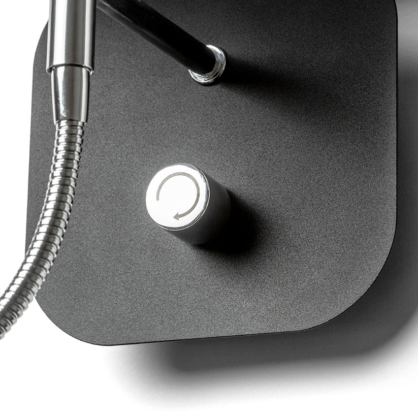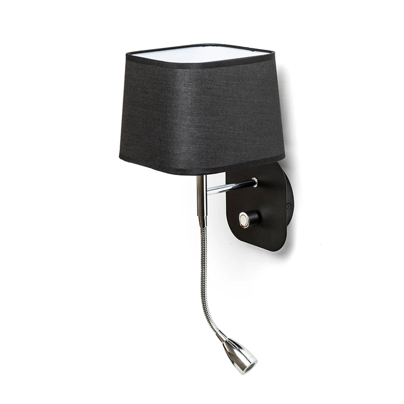 PERTH este o lampă de perete modernă, cu abajur textil unghiular și spot LED pe gât flexibil tip gâscă. Cele două surse de lumină pot fi controlate independent, prin intermediul comutatorului rotativ amplasat pe baza unghiulară a lămpii.